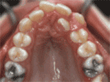 前牙移位:相邻牙齿无序前突。